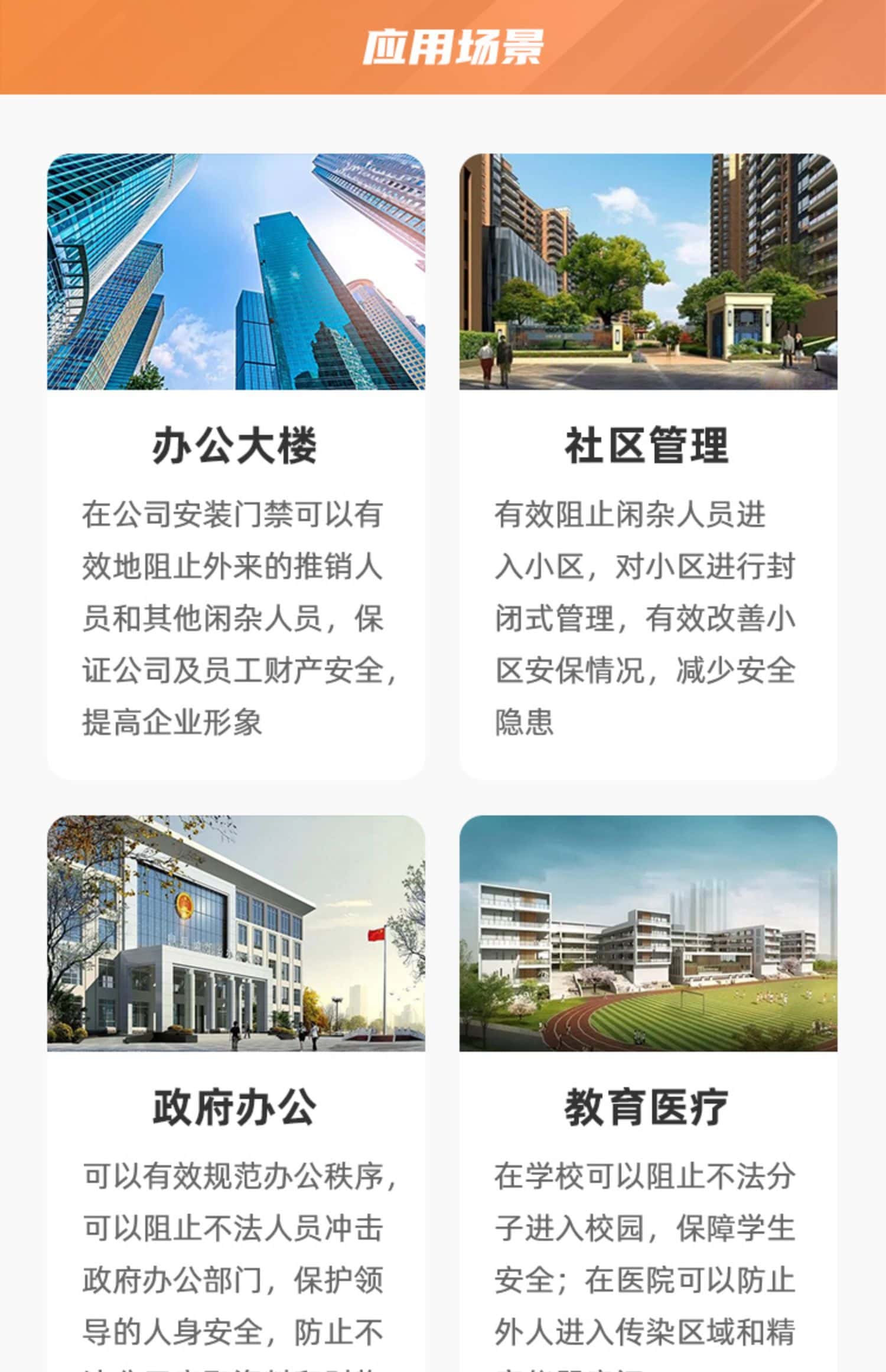 集成与扩展:安防门禁系统可以与其他安全设备(如摄像头、报警器等)和楼宇自动化系统集成,以提供更综合的安全解决方案。它也可以根据需求进行扩展,支持多个门禁点和大规模部署。